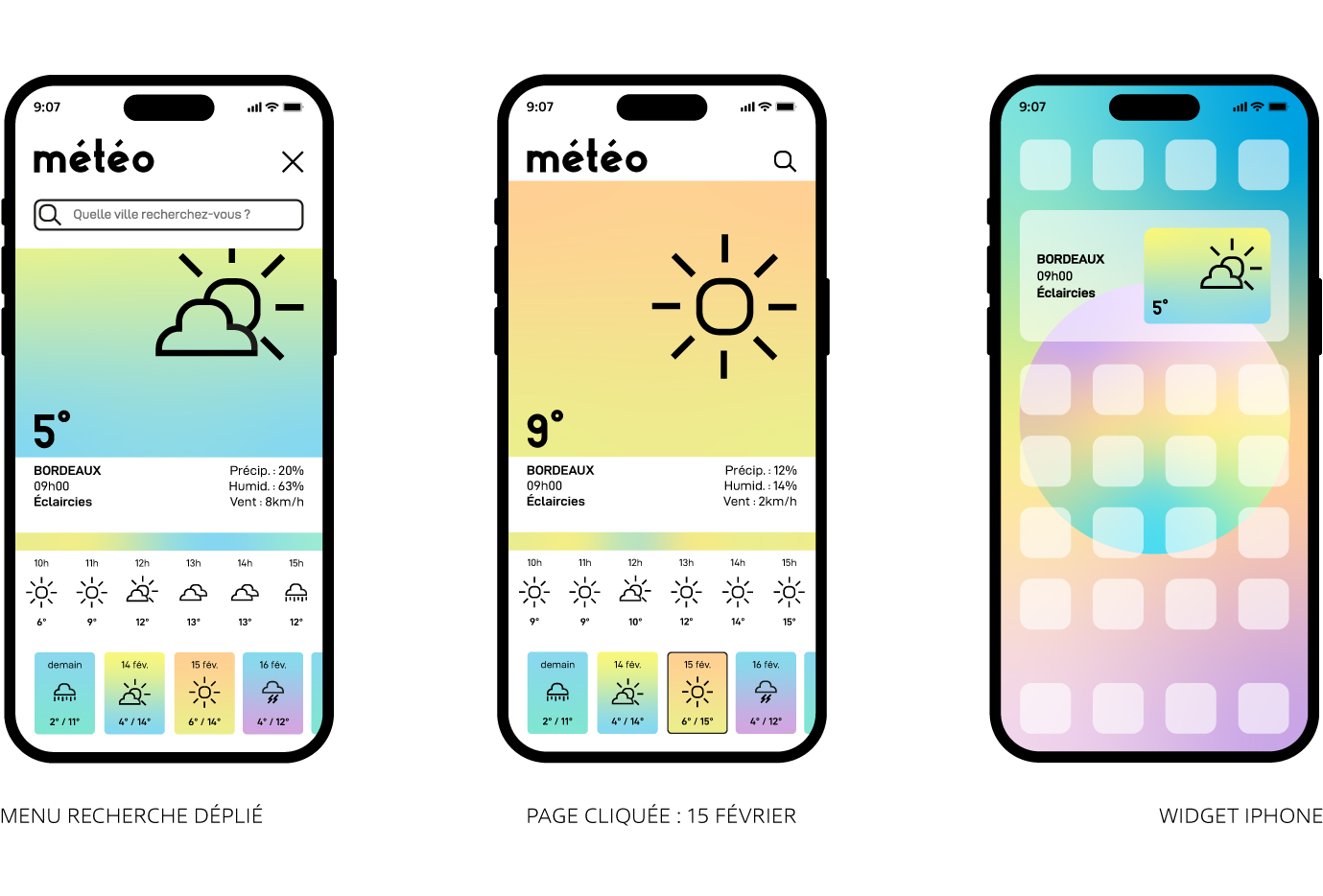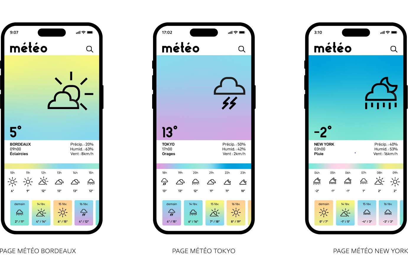 APPLICATION MÉTÉO Identité visuelle : Design system : Design application : retour © RVB DESIGN 2024 - TOUS DROITS RÉSERVÉS - MENTIONS LÉGALES